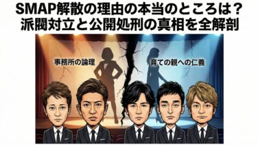 SMAP解散の本当の理由は不仲ではない?2016年の解散劇の裏にあった、ジャニーズ事務所内部の派閥対立とマネジメント崩壊の真相を専門家が徹底解説。なぜ木村拓哉と4人のメンバーは道を違えたのか、当時の報道と事実を一本の線で結び、騒動の全貌を明らかにします。