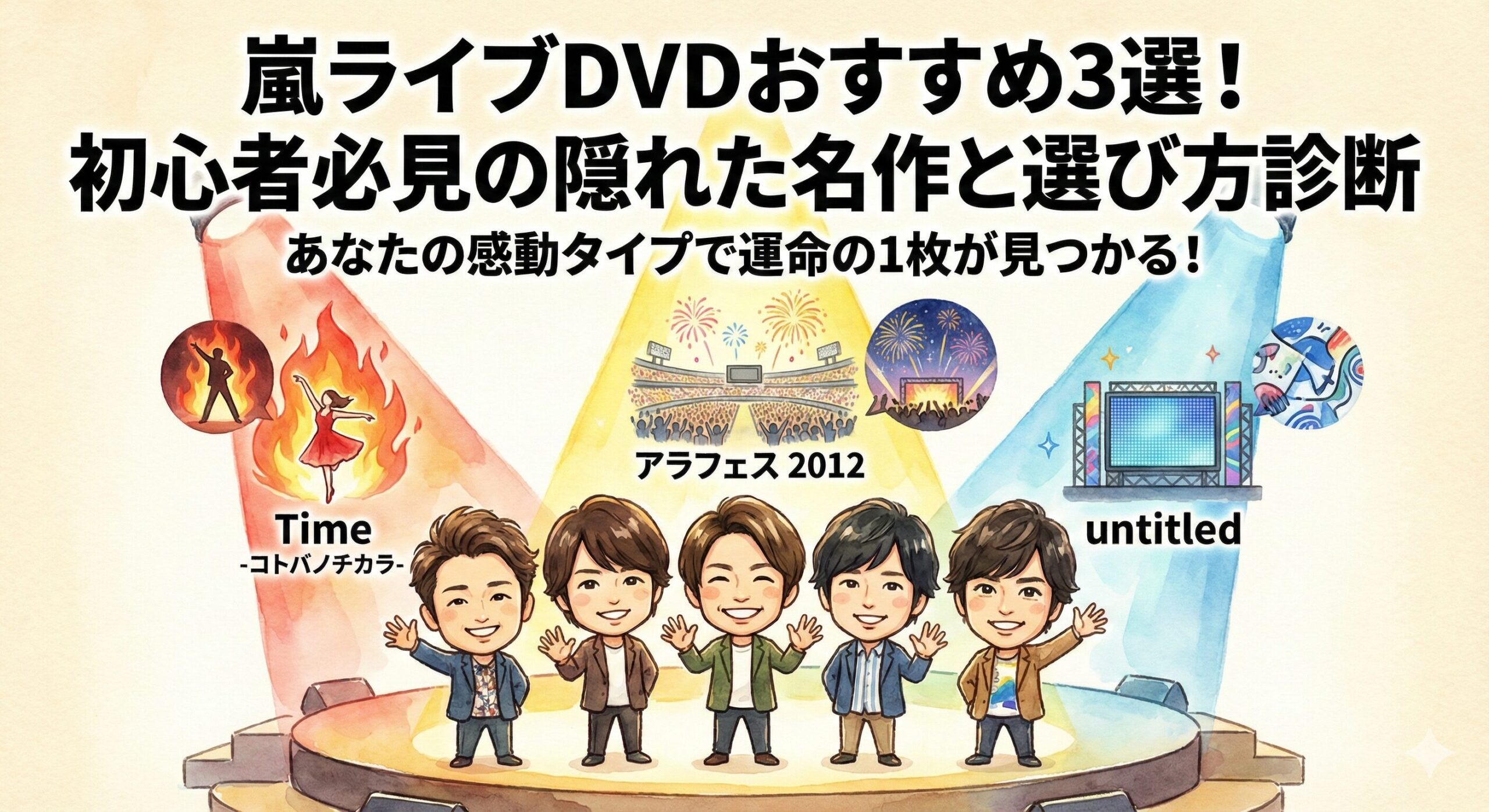 嵐の全ライブ映像作品をコンプリートし、その魅力を研究し続けてきました。個人ブログでの発信に加え、新規ファン向けの作品診断を多数実施。これまで100人以上の「最初の一歩」をサポートしてきた経験から、客観的かつ情熱的なレビューをお届けします。
