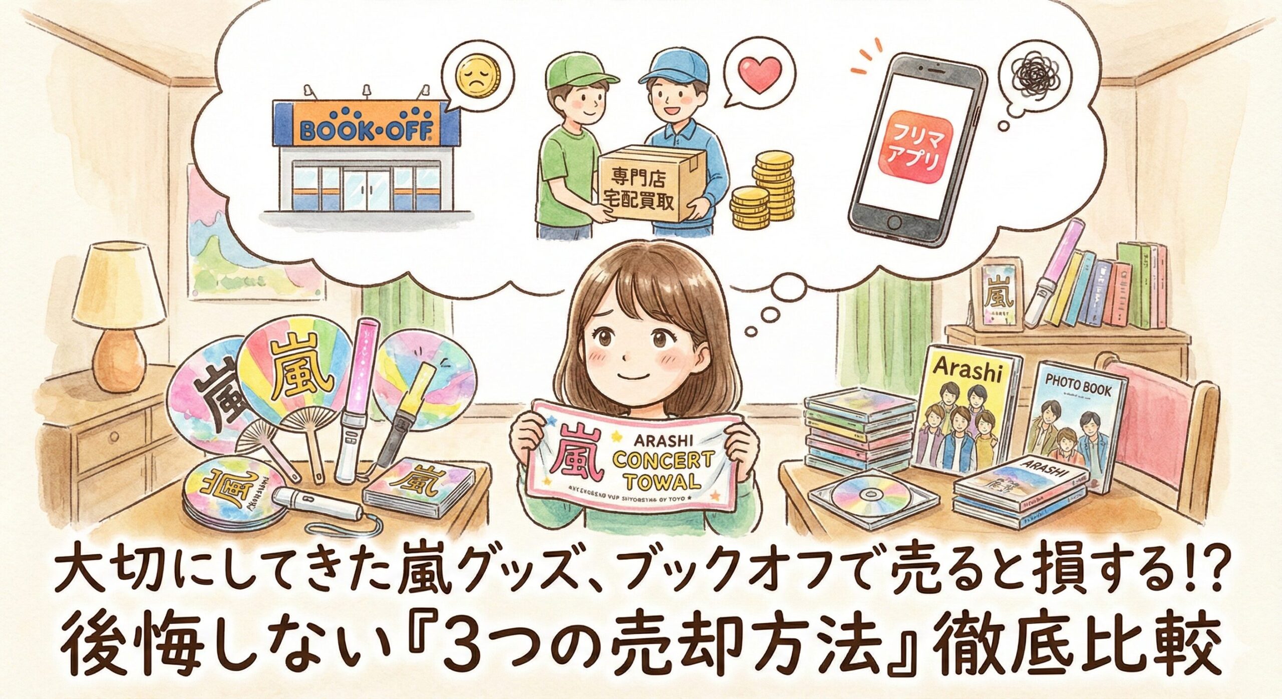 なお、「売るか残すか」迷っている方は、手放す前に“嵐の今”を一度整理しておくのもおすすめです。例えば、大野智の現在と嵐の未来(宮古島・新会社設立の話)を読んで気持ちが落ち着いてから判断する人もいますし、メンバー個人の近況が気になる方は二宮和也の妻・伊藤綾子の現在や家族の話を整理した記事も参考になります。