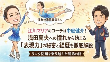江川マリアを育てたコーチは誰?答えは元トップスケーターの中庭健介氏です。リンク閉鎖の危機を乗り越え、福岡へ移住してまで師事した師弟の絆とは。浅田真央への憧れから始まったスケート人生、そして「観る人の心を震わせる表現力」の秘密を、フィギュアスケート解説者が3分で紐解きます。