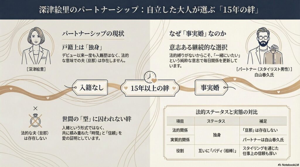 なぜなら、法的な縛りがない分、お互いが「一緒にいたいからいる」という純粋な意志だけで毎日関係を更新し続けていると言えるからです。これはフランス婚(パックス)など、欧州では成熟したカップルの形として広く認められています。深津さんの選択は、まさにこの「自立した大人のパートナーシップ」そのものと言えるでしょう。