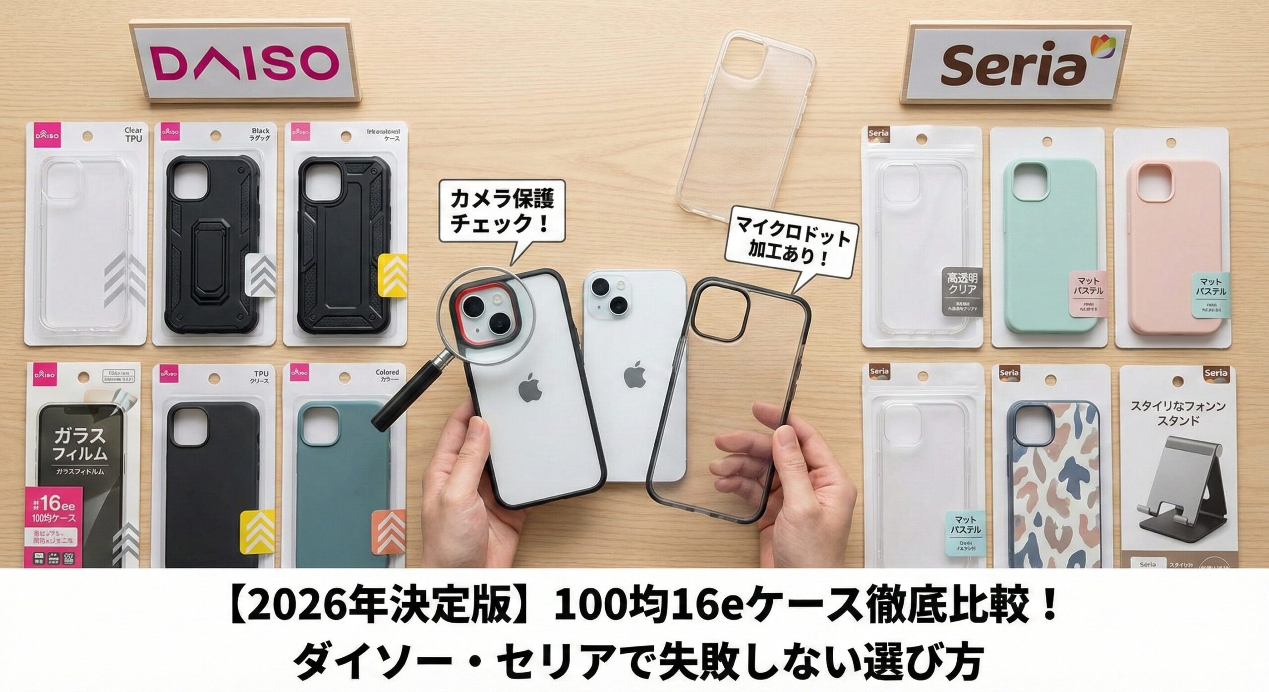 この記事では、ダイソーとセリアのiPhone 16e用ケースを全てチェックした私が、「目的別の店舗の使い分け」から「ハズレを引かないための3つのチェックポイント」までを徹底解説します。