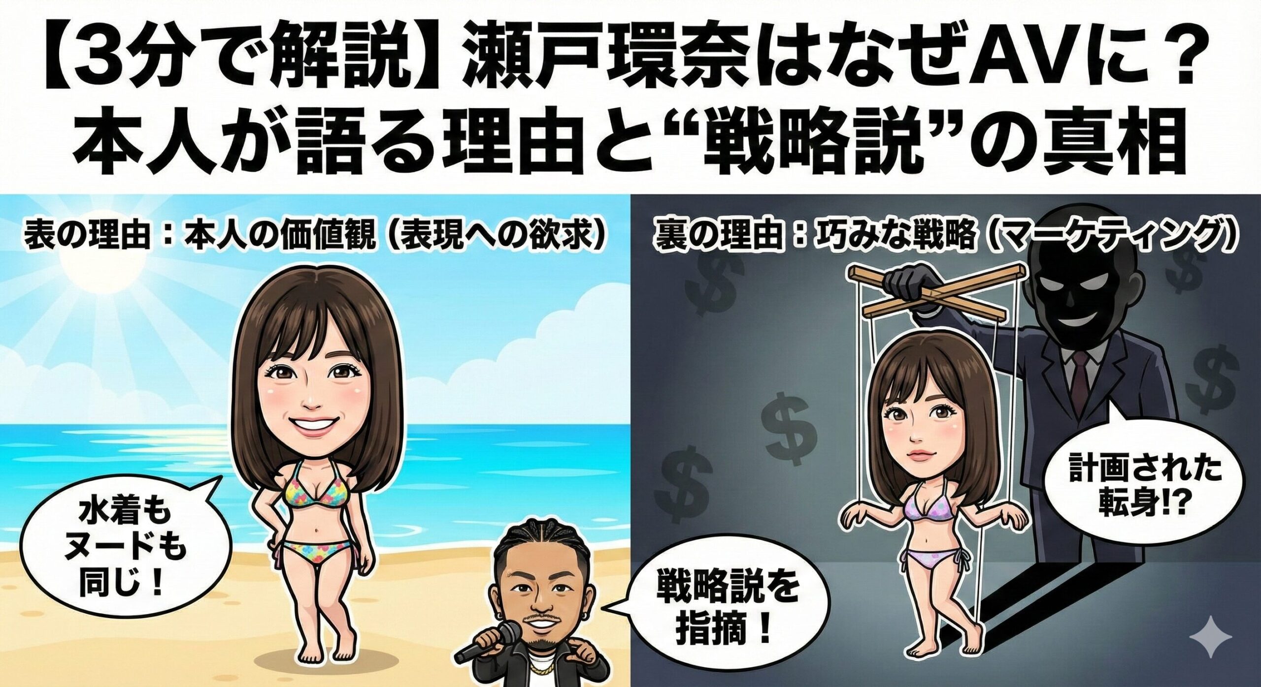 この記事では、憶測や噂話を徹底排除し、瀬戸環奈さん本人が語った「転身のワケ」から、ラッパー呂布カルマ氏も言及した「戦略説」の真相まで、3分でサクッと解説します。読み終える頃には、このニュースの全体像が面白いほどクリアになっているはずです。
