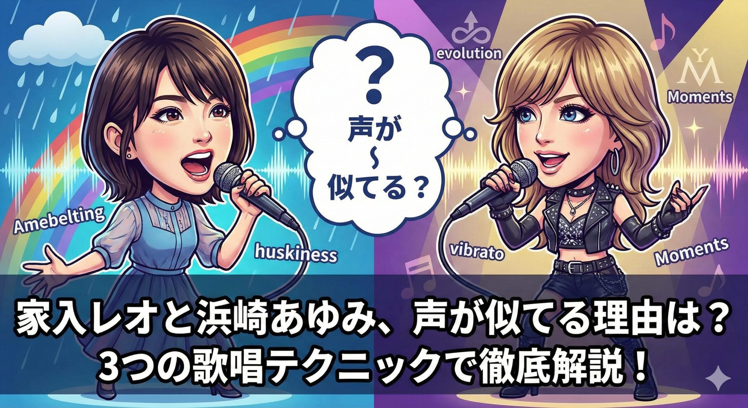 いわゆる「がなり声」に近いこのテクニックは、ロックボーカリストによく見られます。家入レオさんも浜崎あゆみさんも、サビの最高音でこのベルティングを使い、聴き手の鼓膜に直接訴えかけるような「痛み」や「切実さ」を表現しています。この喉を締め上げるようなギリギリの緊張感が、二人の歌声の類似性を決定づけています。