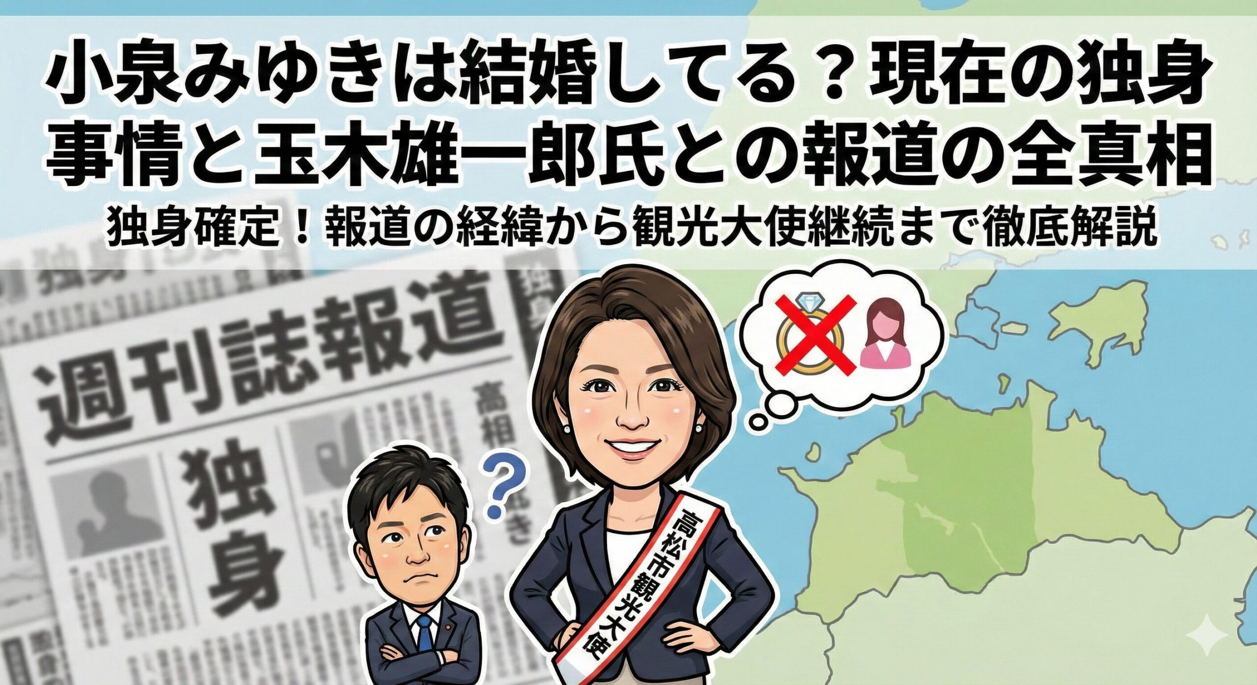 この記事では、彼女の現在の結婚状況に加え、世間を騒がせた玉木氏との不倫報道の経緯と結末、そして高松市観光大使としての進退について、時系列で徹底的に解説します。