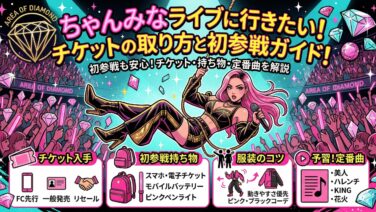 ちゃんみなライブ「AREA OF DIAMOND 4」の日程・チケット入手法・倍率・持ち物・予習曲まで完全解説。ファンクラブROYAL FAMILYのコスパ検証、公式リセールやU-NEXT配信の活用法も紹介。初参戦でも安心の実践ガイド。