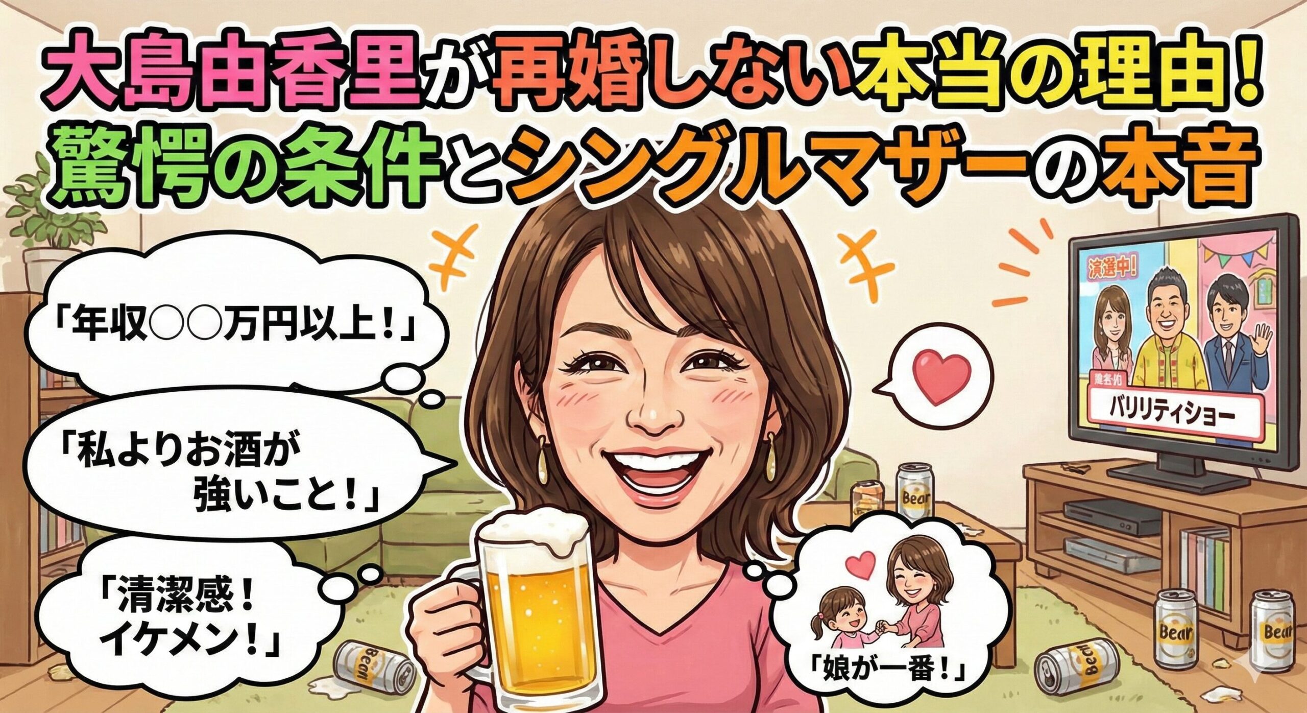 今回は、芸能ウォッチャー兼主婦のミサキが、大島由香里さんの「再婚事情」と、その奥にある「本音」を深掘りします。読み終わる頃には、彼女のことが少しだけ好きになっているかもしれませんよ。
