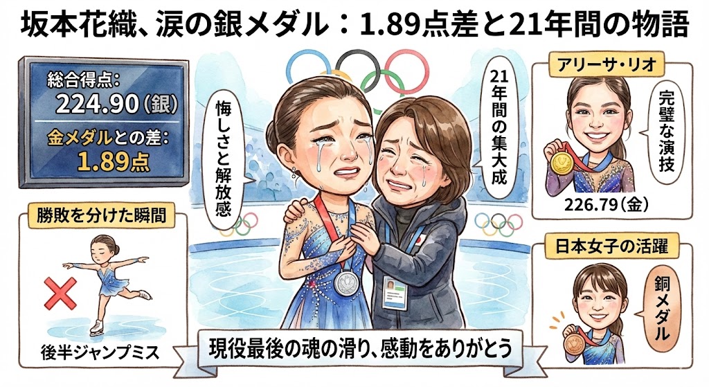 今朝、通勤電車の中でスマホを開き、「坂本花織 銀メダル、涙」という短いニュース通知を見て、胸がざわついた方も多いのではないでしょうか。深夜の放送だったため、リアルタイムで応援できず、一体何があったのか詳細を知りたくてたまらないお気持ち、よく分かります。