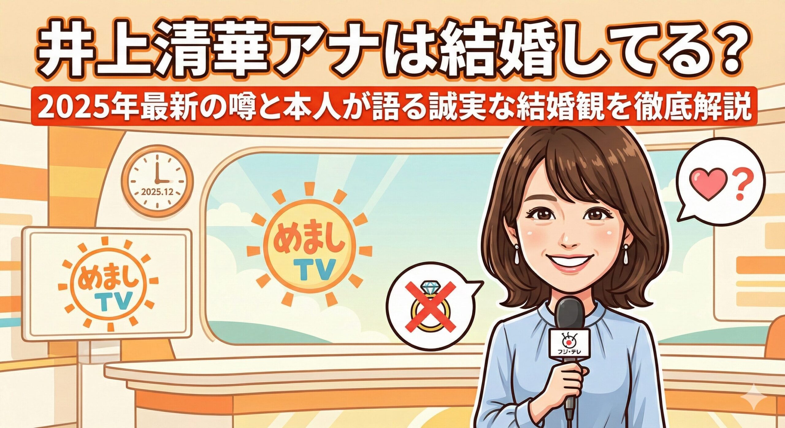 結論からお伝えしますと、2025年12月現在、井上清華アナが結婚しているという事実は一切ありません。
