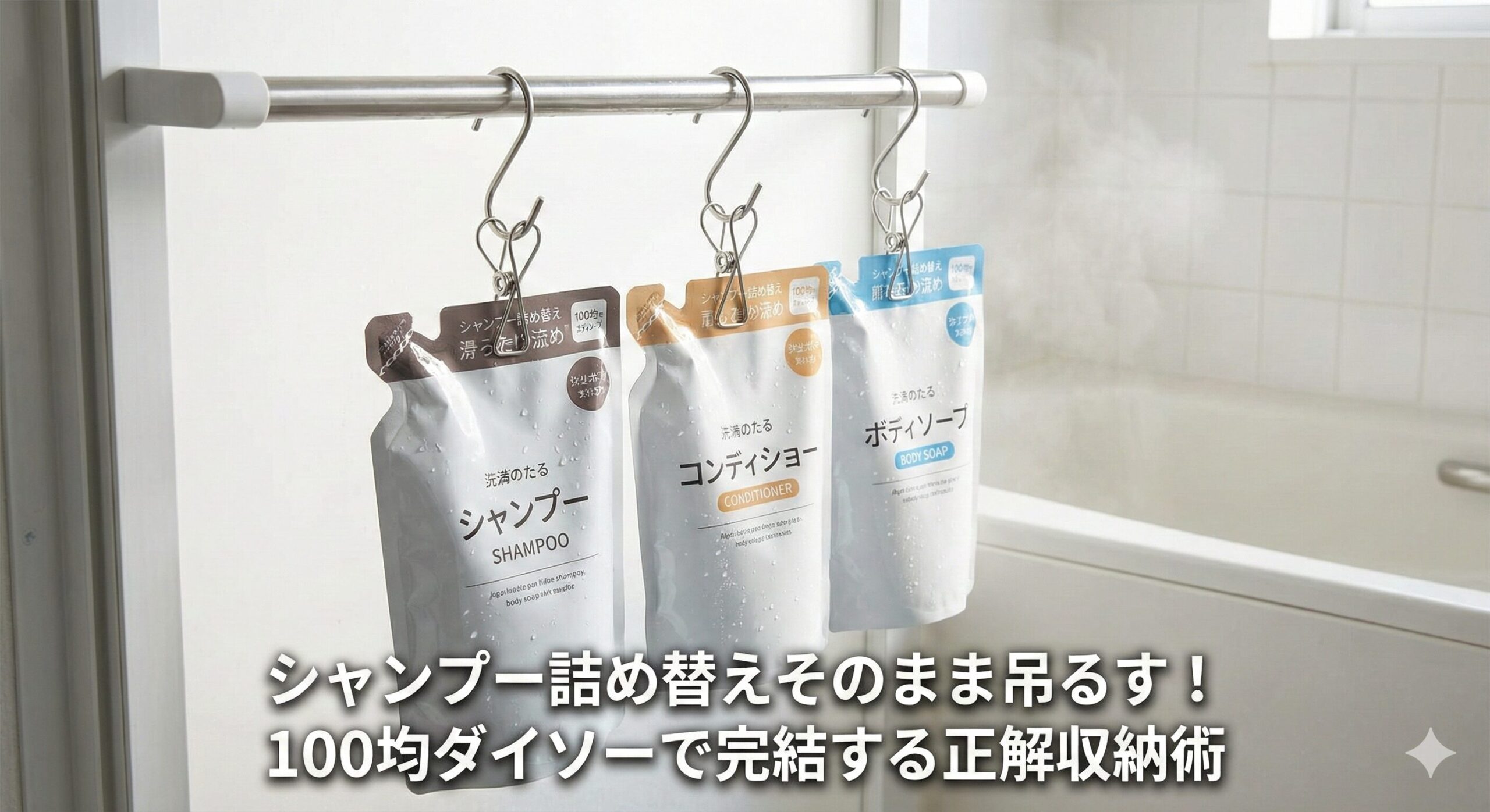 しかし、断言します。今の100均グッズを活用すれば、たった数百円で「お風呂のぬめり掃除」と「詰め替え作業」の両方から、永久に解放されます。