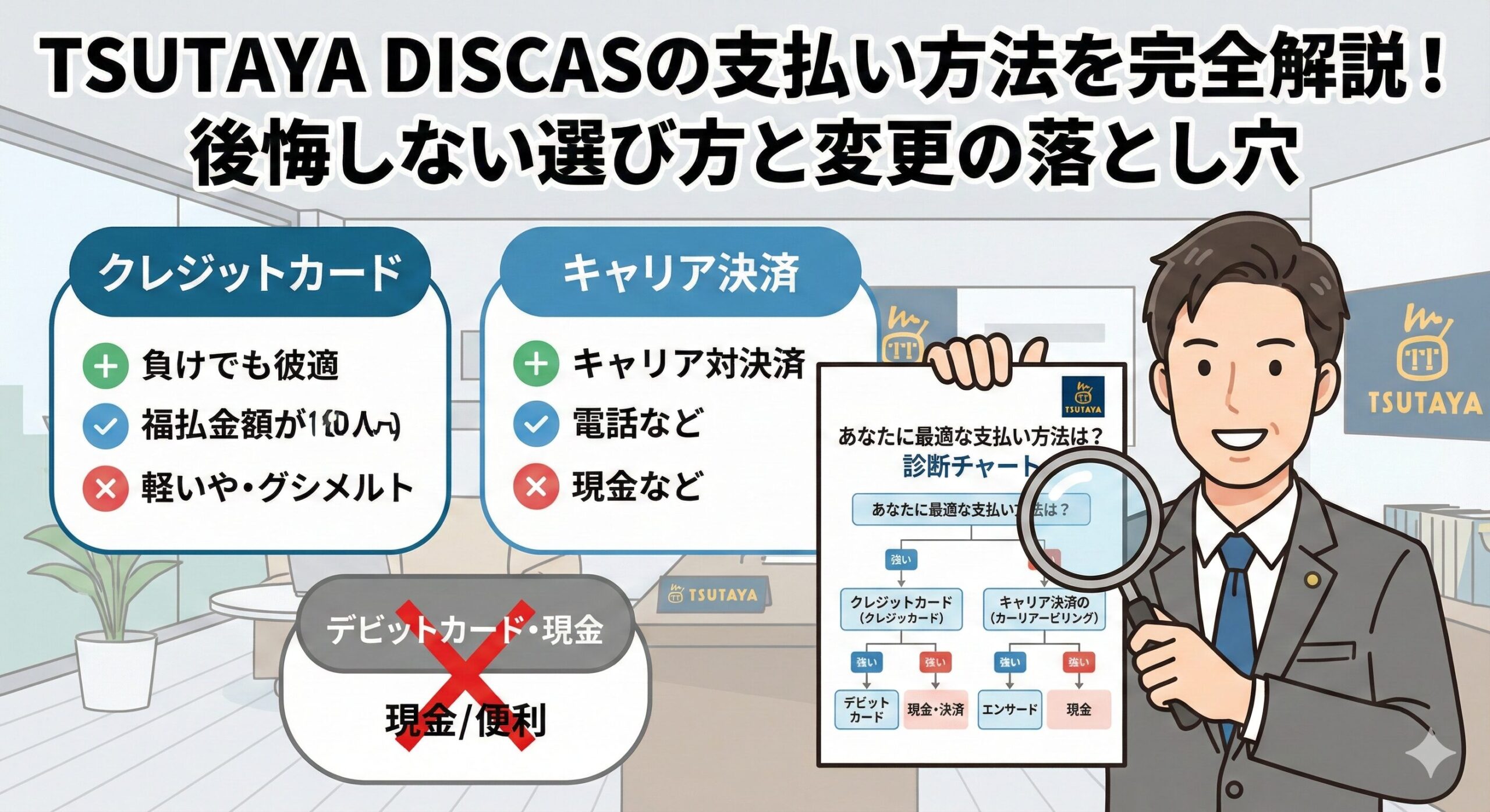 TSUTAYA DISCASの利便性を左右する2大決済手段について、多角的な視点から比較を行いました。